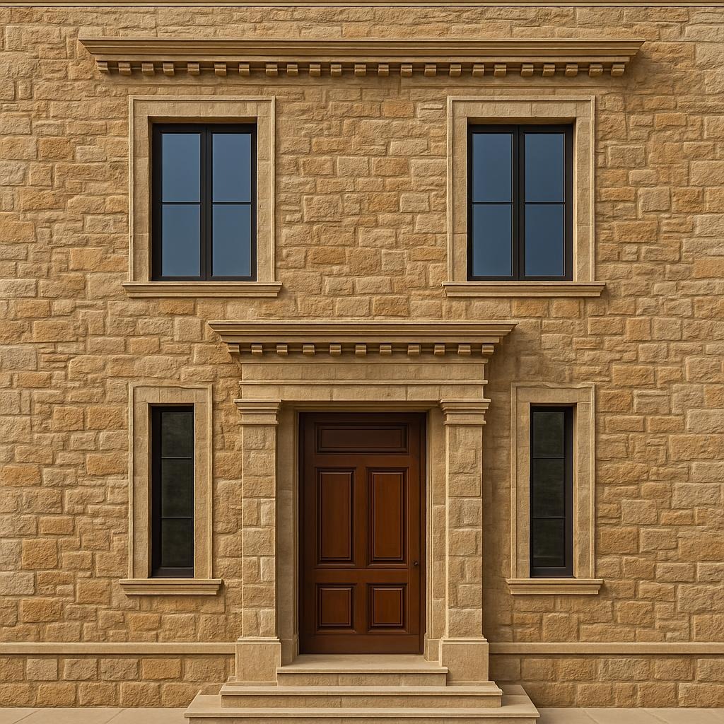 - الاستخدام: يُفضل في الواجهات الرئيسية للفلل والقصور والمباني التي تهدف إلى إبراز القوة والفخامة.