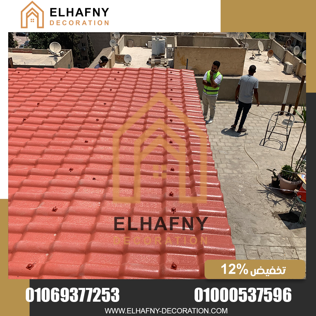 سقف حديث يستخدم بديل الصاج من القرميد البلاستيك لمتانة وعزل فائقين.